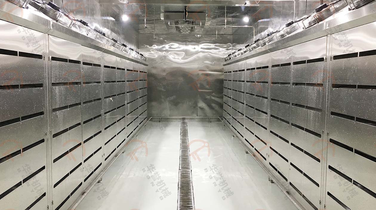 熱源有水蒸汽,電蒸汽發(fā)生器等多種方式?;緸橥ㄟ^管路把熱量傳導(dǎo)進(jìn)解凍間內(nèi)。另有輔助加濕方式:霧化加濕,通過加壓將水霧化結(jié)合風(fēng)循環(huán)均勻的分散至設(shè)備內(nèi)部。